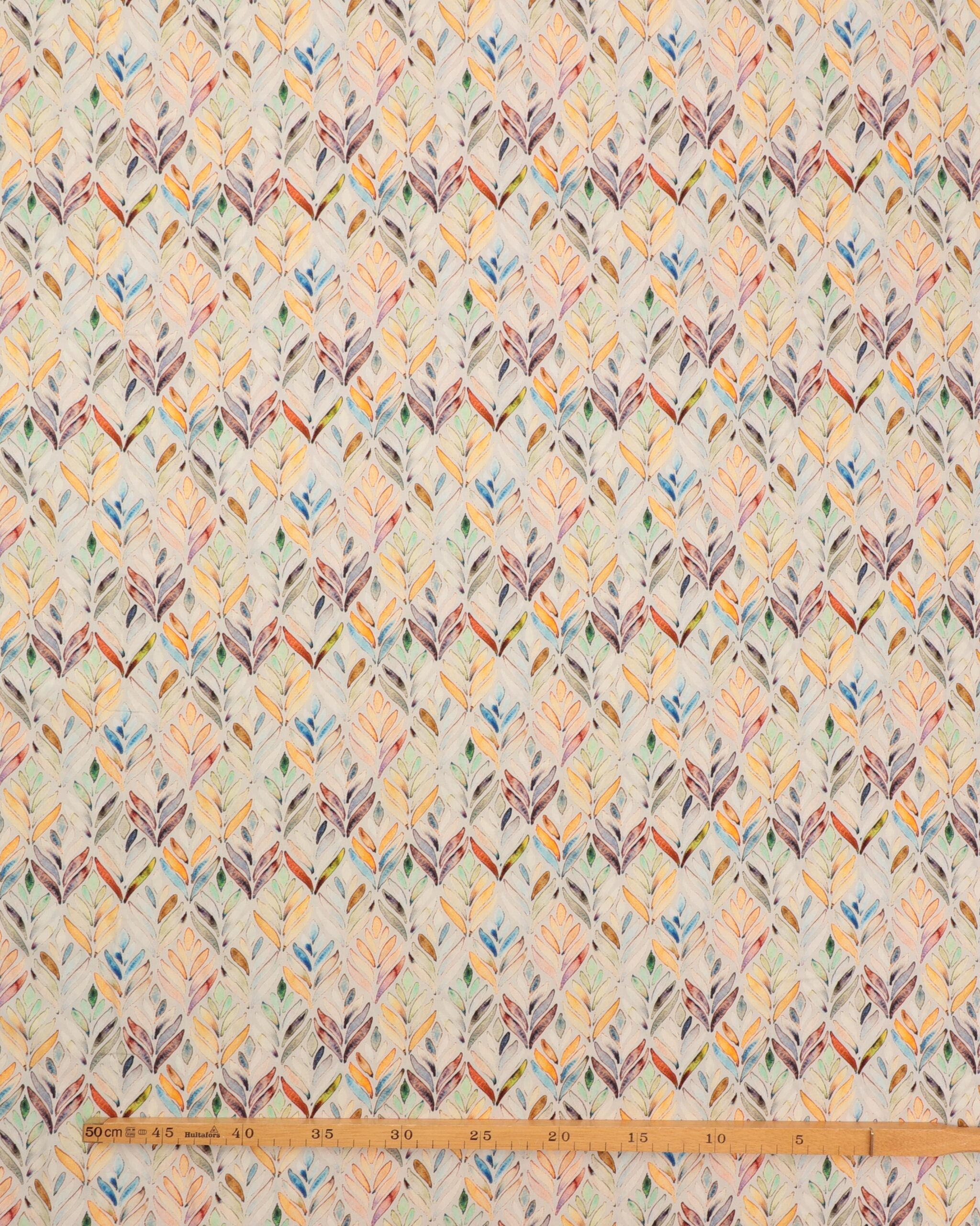 Bladmønster på lys beige – Viskose