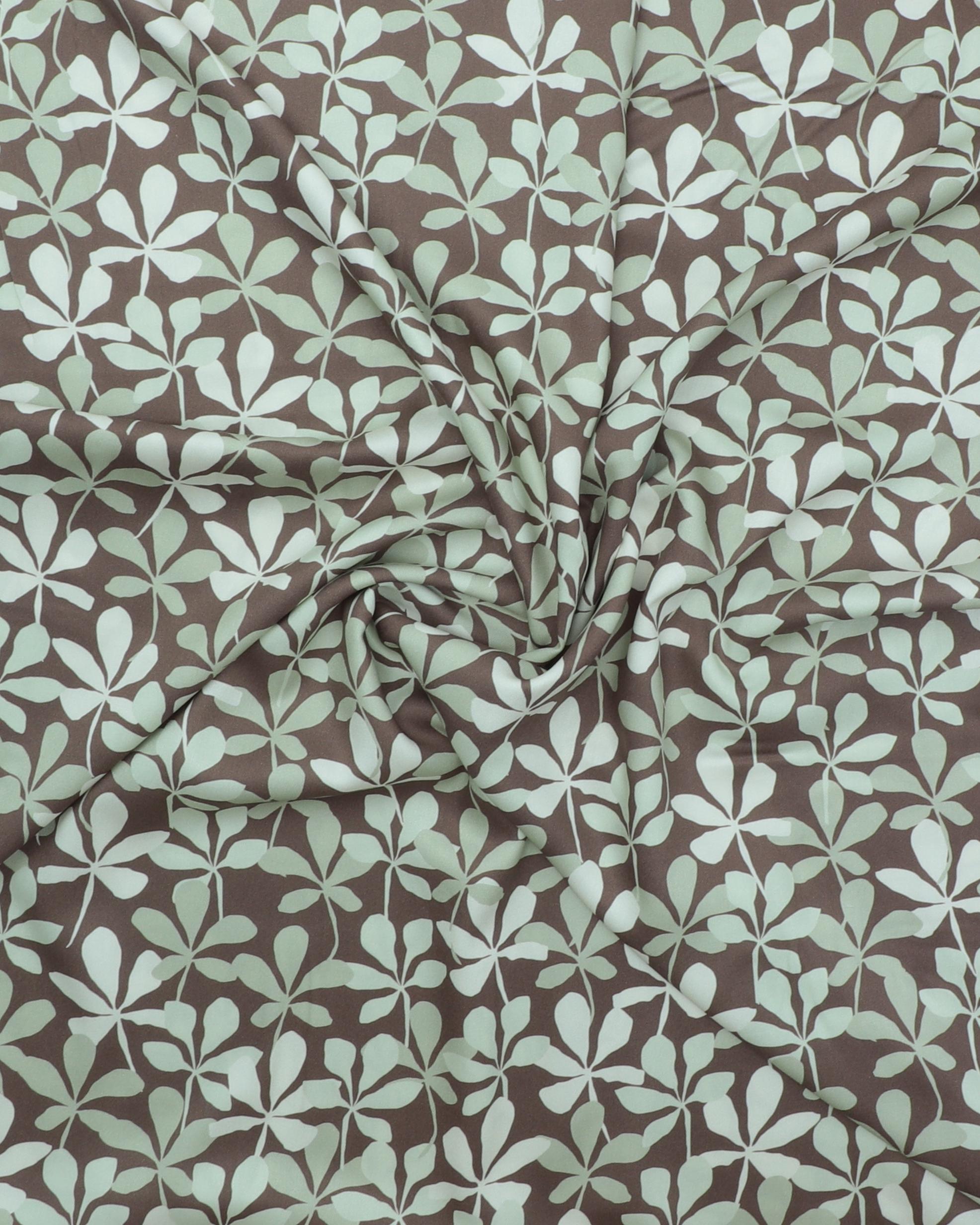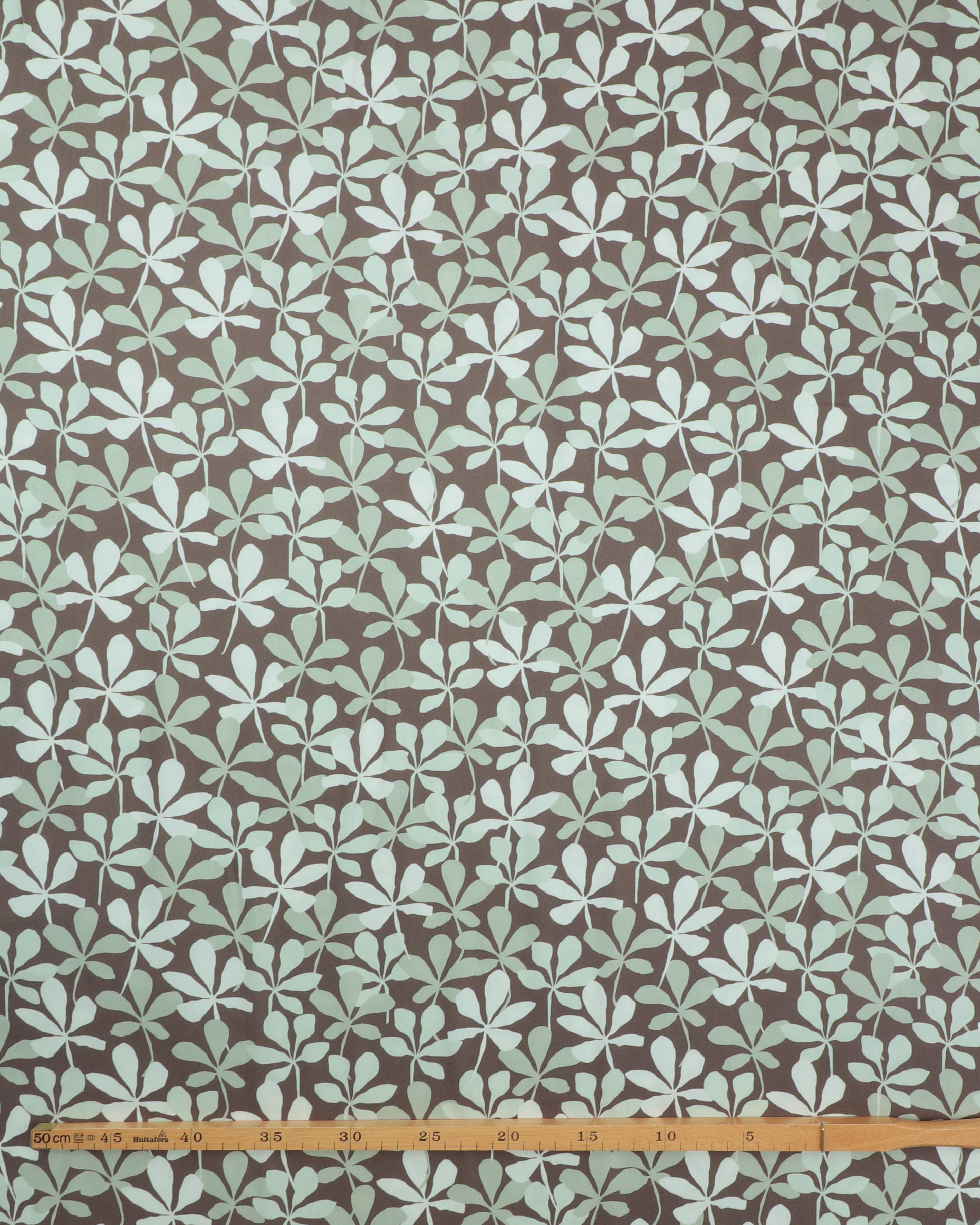 Bladmønster på mørk oliven – Twillvævet viskose