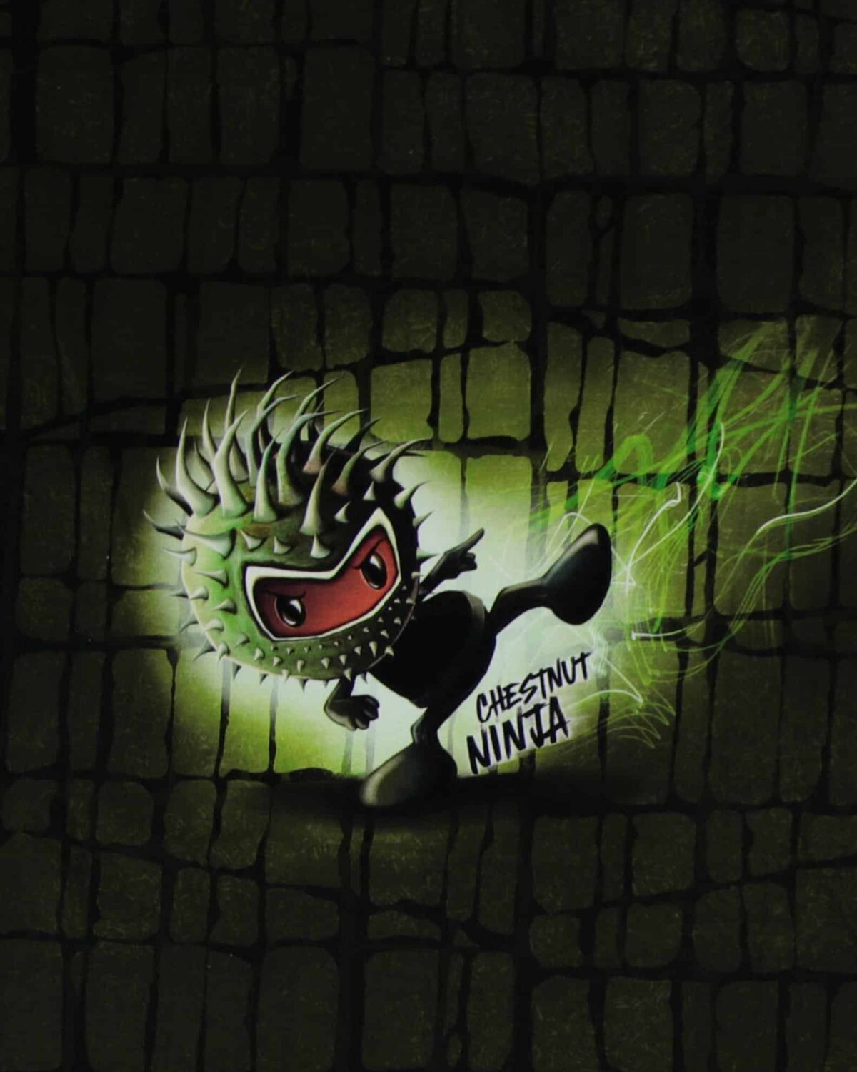 Møsnter i armygrønne farver med en angrebslysten lille ninja.