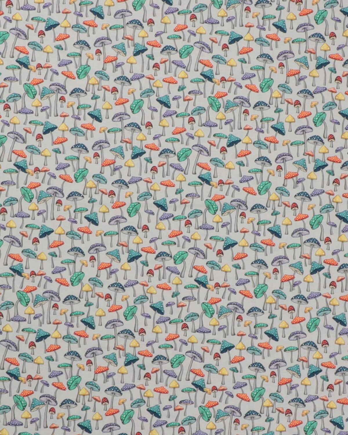 Svampe i orange, petrol, lilla, blå, gul og rød.