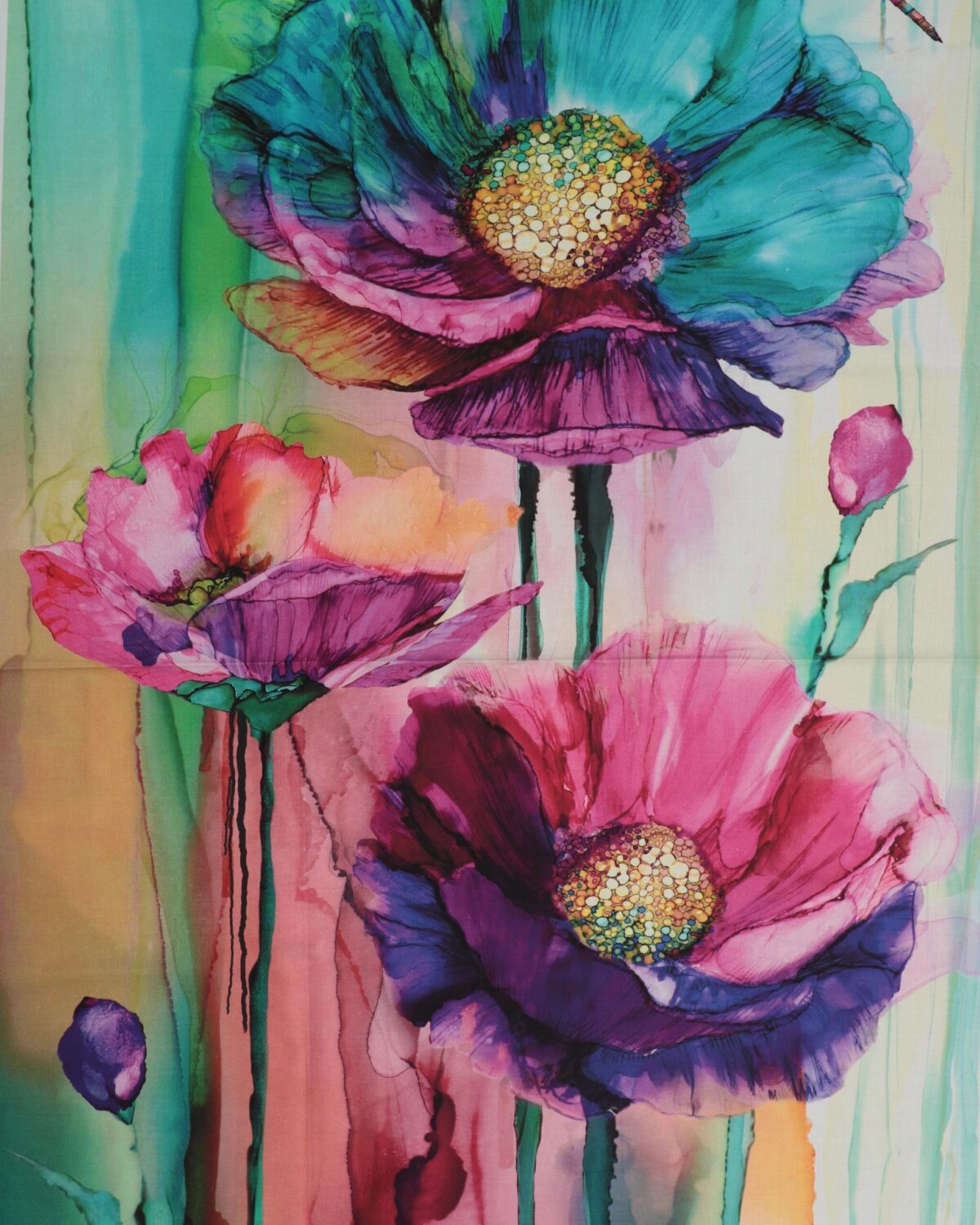 Dragonfly Dance, blomster og guldsmede – Patchwork panel