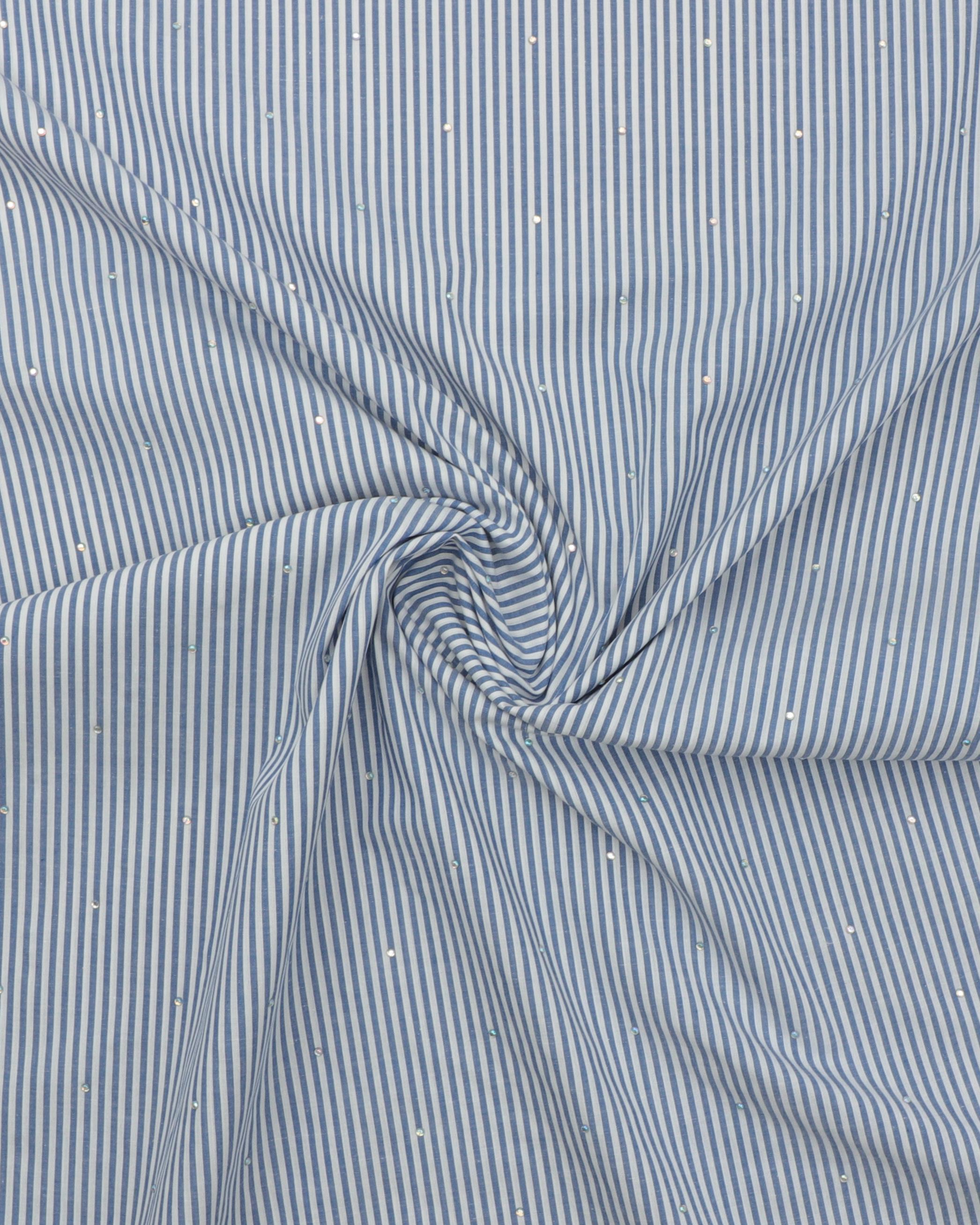 Hvid/blå striber med sten – Bomuld
