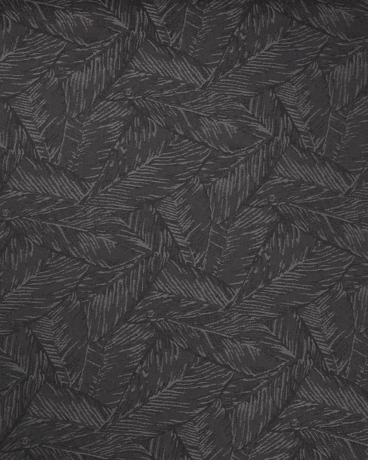 Koksgrå med mørkegråt bladmønster – Gardinstof