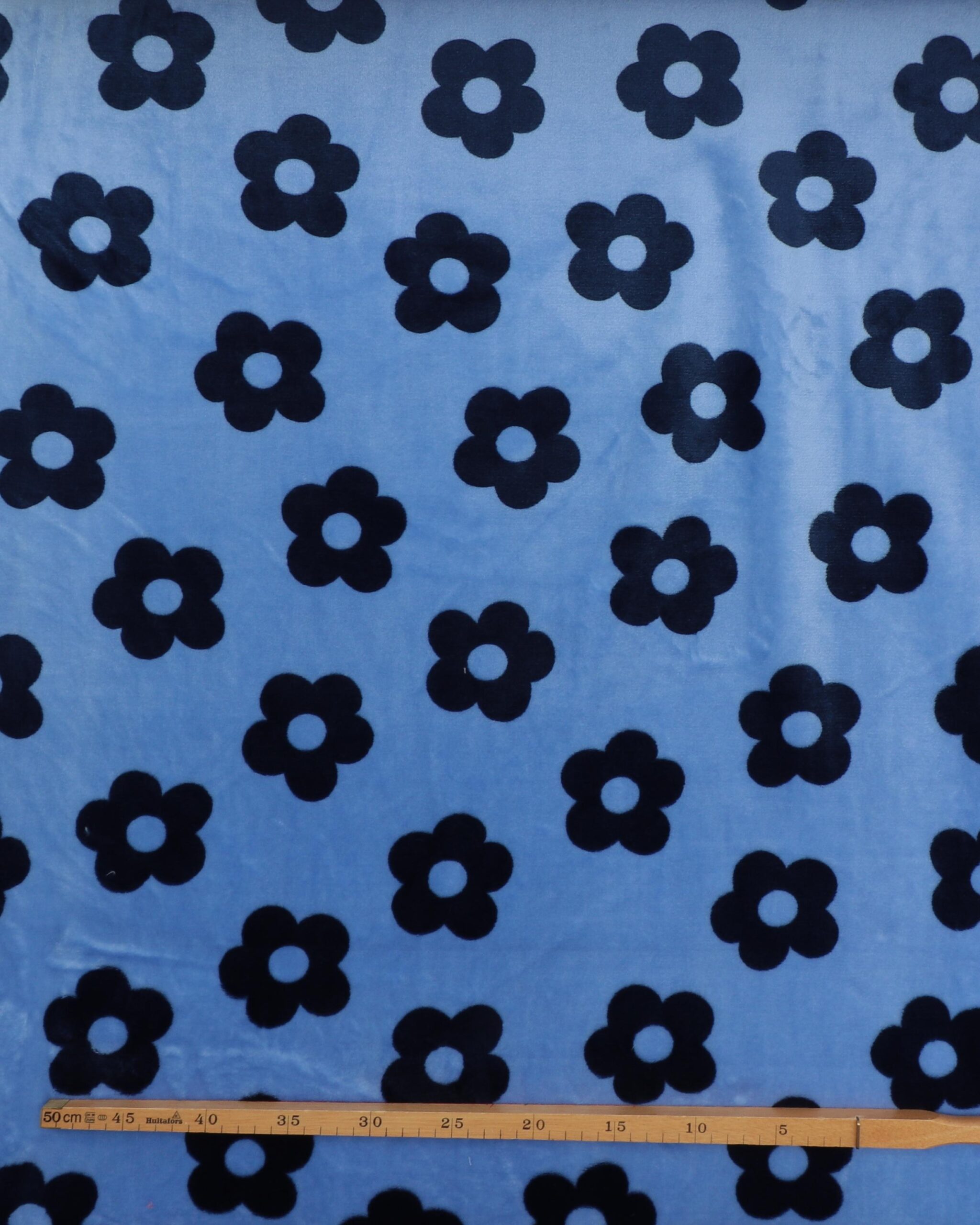 Lyseblå m. mørkeblå blomst – Microfleece