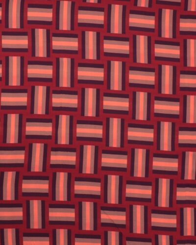 Mønster i bordeaux/rød/orange/lysebrun – Twillvævet viskose