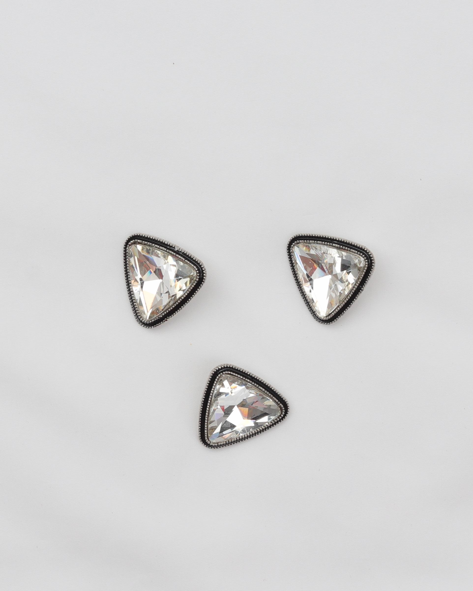 Øjeknap, sølv trekant med klar sten og sort kant – 20 mm metalknap