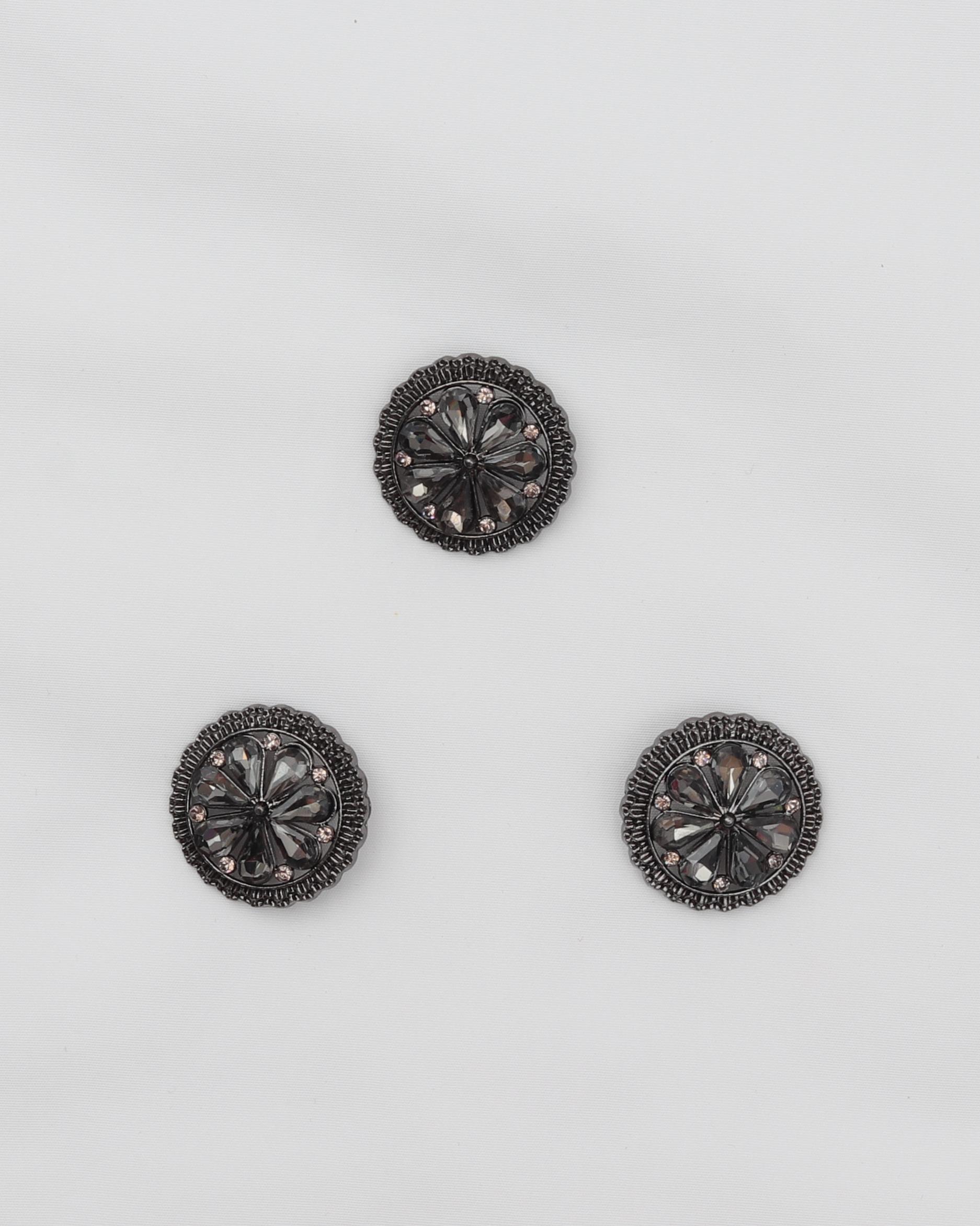 Øjeknap, sort m. blomst i sten – 20 mm metalknap