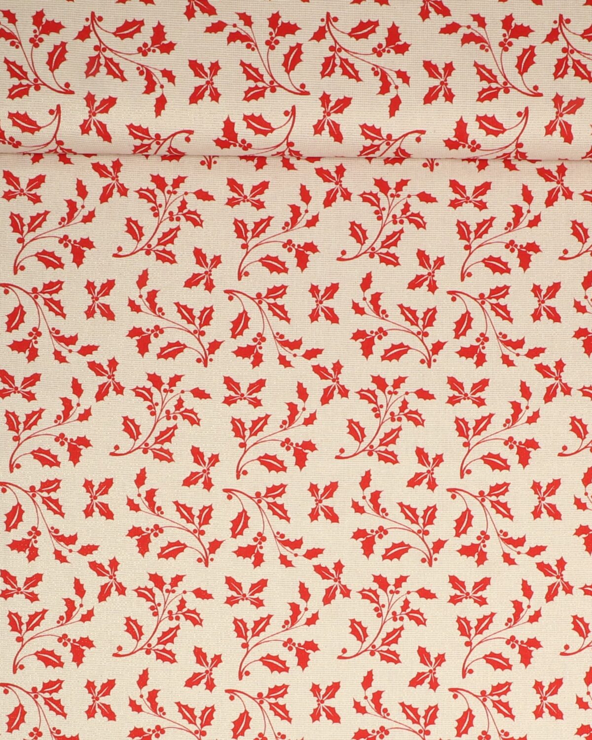 Røde kristtjørn på offwhite med guldtråd – Boligtekstil
