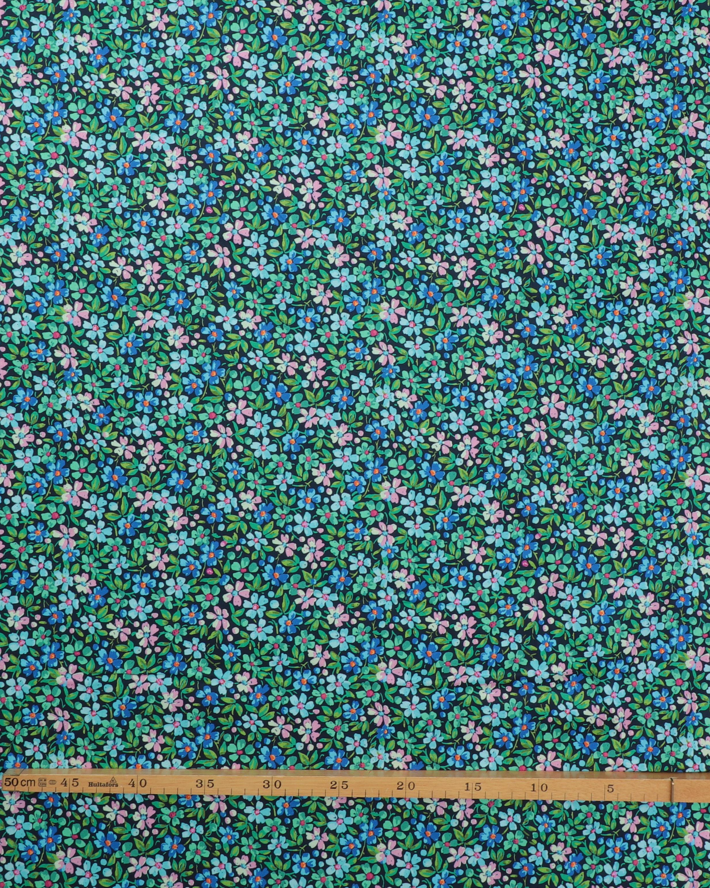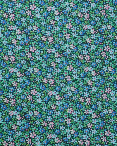 Rosa, blå, grønne blomster på sort – Patchwork