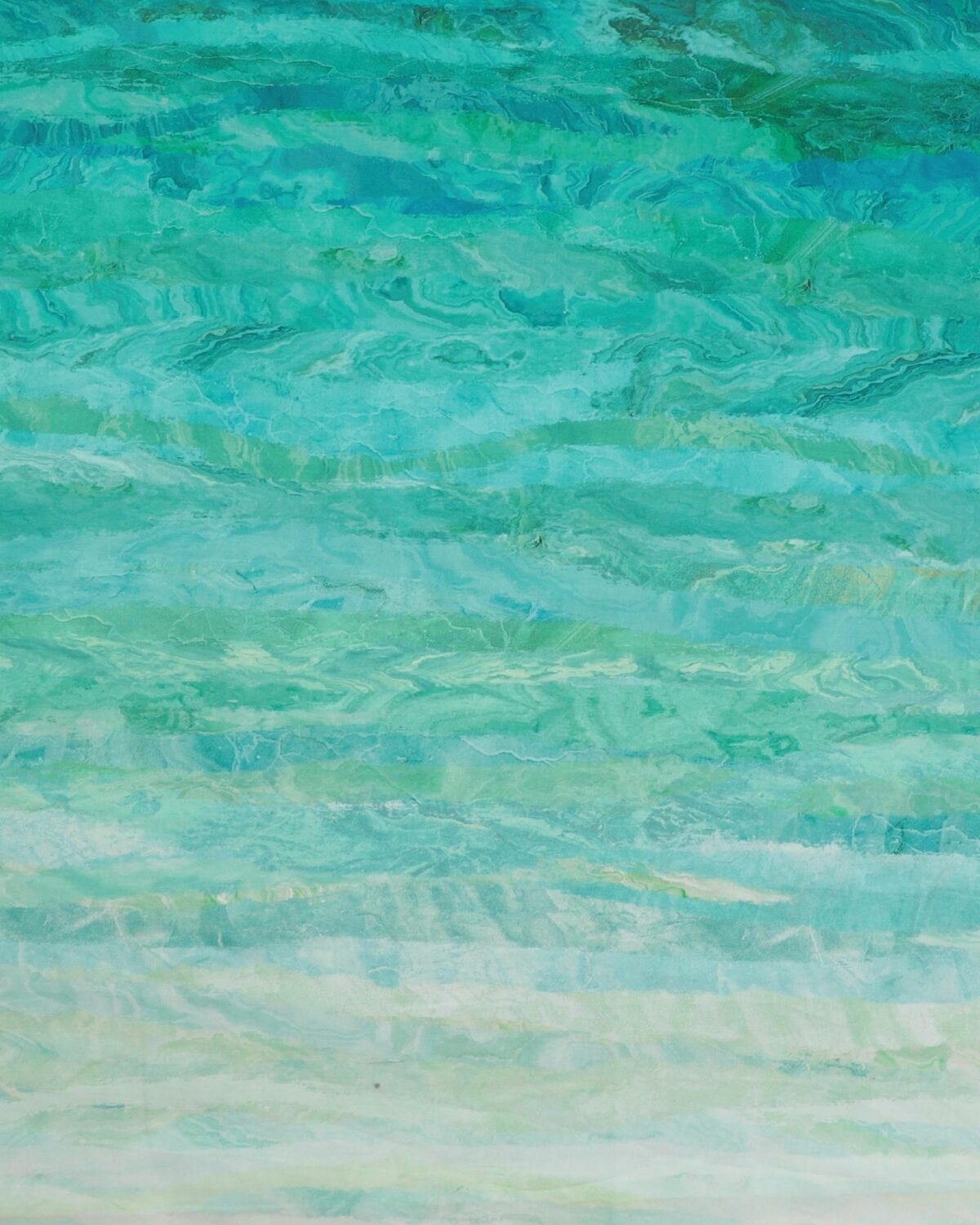 Farverne er blå og blågrønne og løber på langs af stoffet.